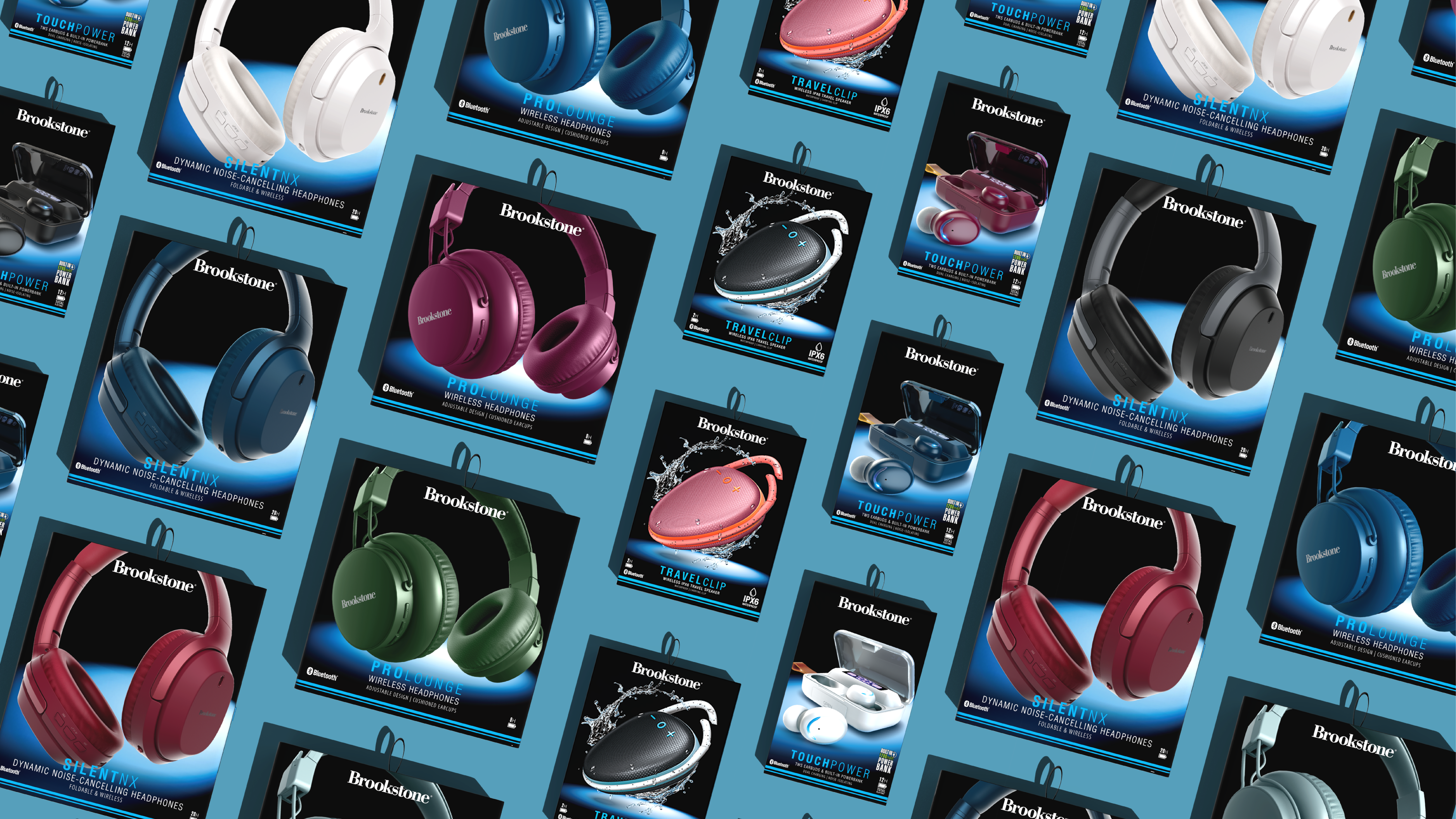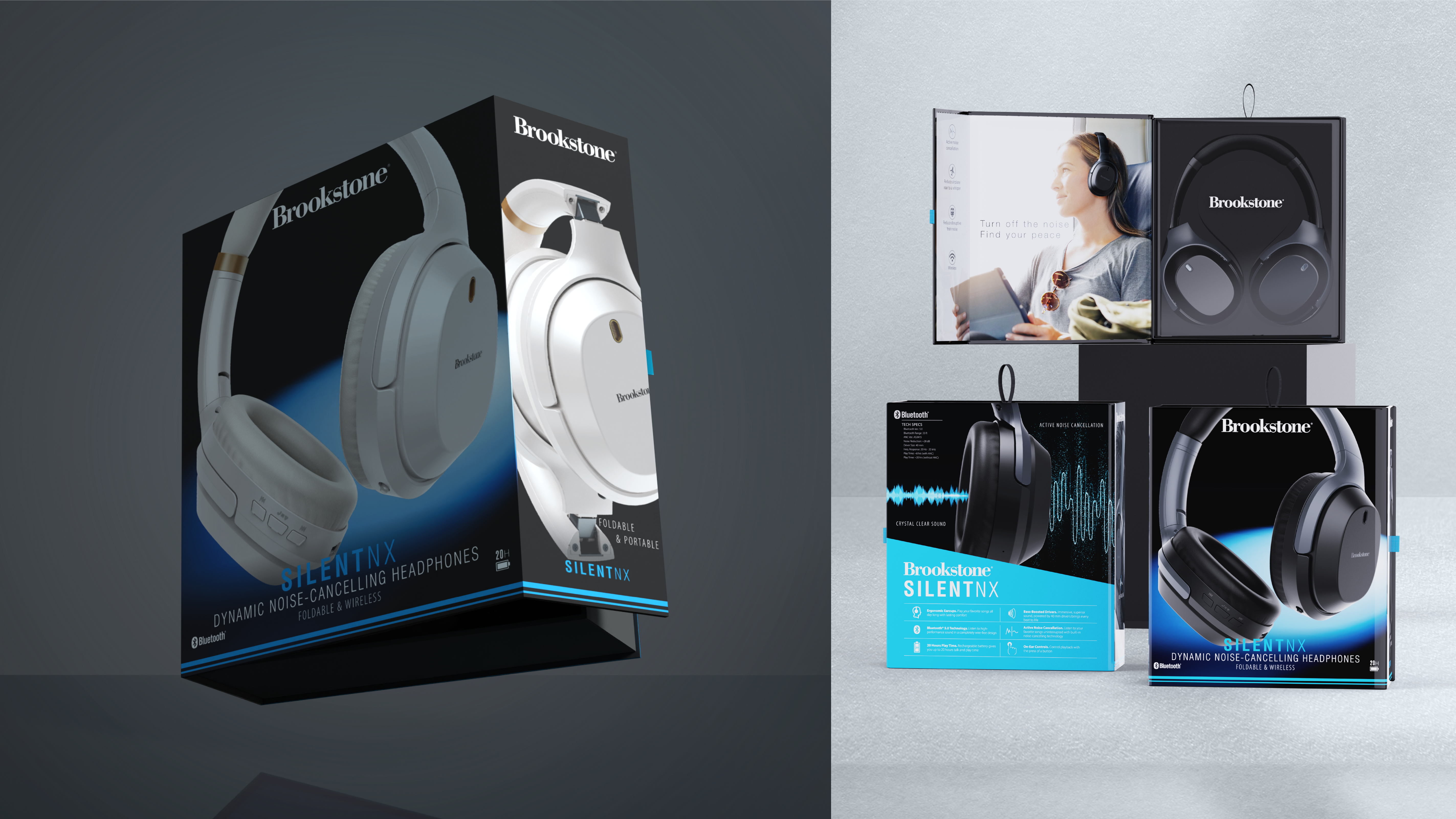 This project sought to raise Brookstone branding to new heights. Through a detailed exploration of visual elements, the design process aimed to forge a cohesive and compelling brand image. Focused on enhancing the packaging for various products, including headphones, earbuds, and speakers, the final result seamlessly integrates a bold color scheme and impactful product visuals. This ensured that the packaging not only aligns with Brookstone’s brand identity but also captivates attention on retail shelves. Exemplifying an effective design approach, this project enhances product visibility, conveying a sense of sophistication and modernity to the consumer.